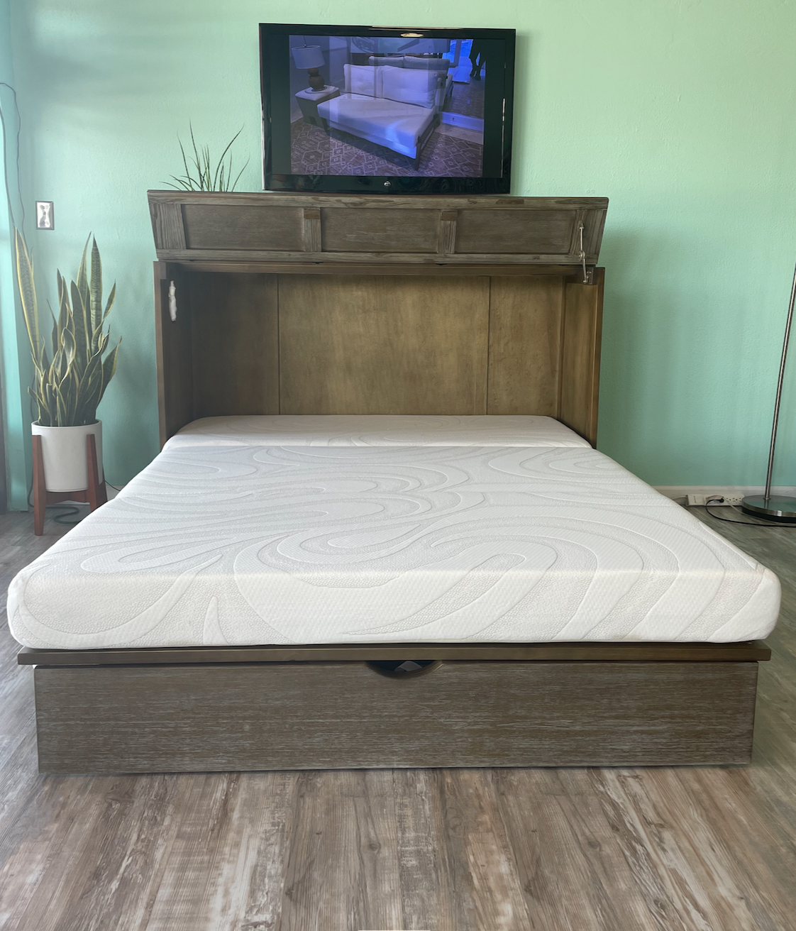 2. Contains a generous queen-size memory foam gel mattress. Gel foam does not retain heat like most memory foam. mattresses. An important consideration in South Florida.